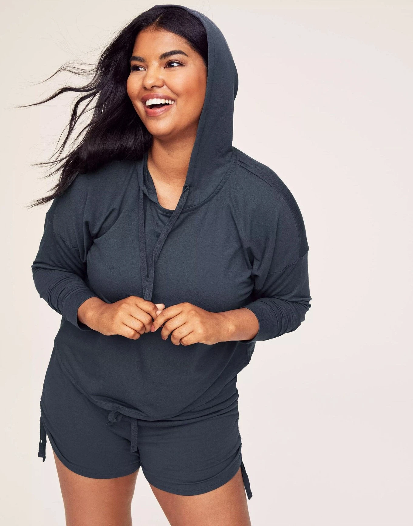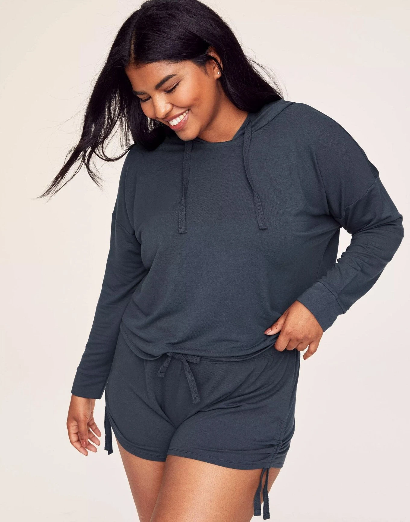 No plans today? Same. Live it up at home with our newest take on the classic sweatshirt + short set! Draped just the way you like it with fun drawstring details added, Abbey’s the super-soft terry-knit set you can adjust however you want to match the flow of your everyday lifestyle. (See Abbey for more sizes.)
