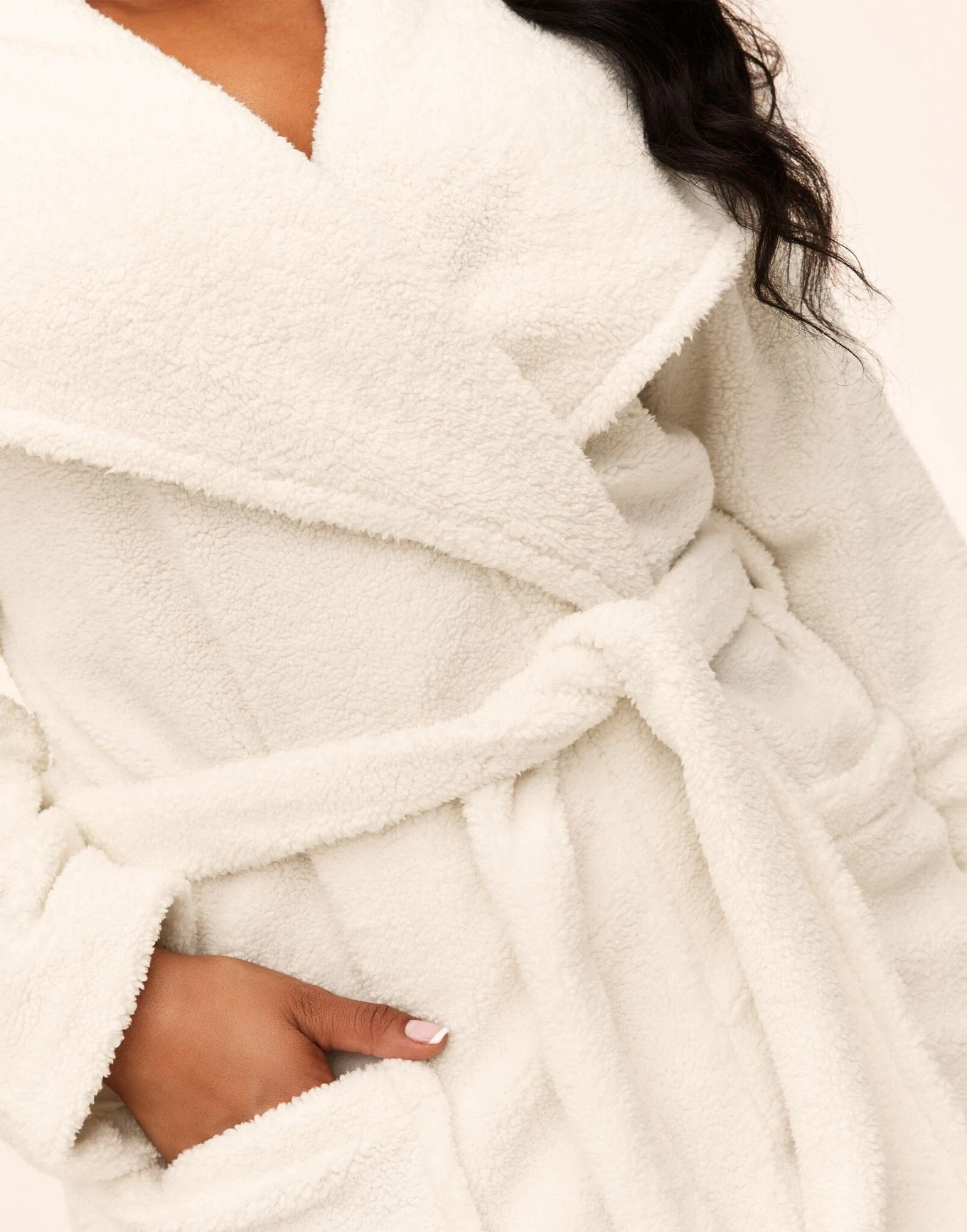 Plush perfection: Meet our classic super-soft sherpa shawl robe (made even better with comfy, convenient pockets!) you’ll wanna wear all cozy-season long. Available in sizes up to 4X!