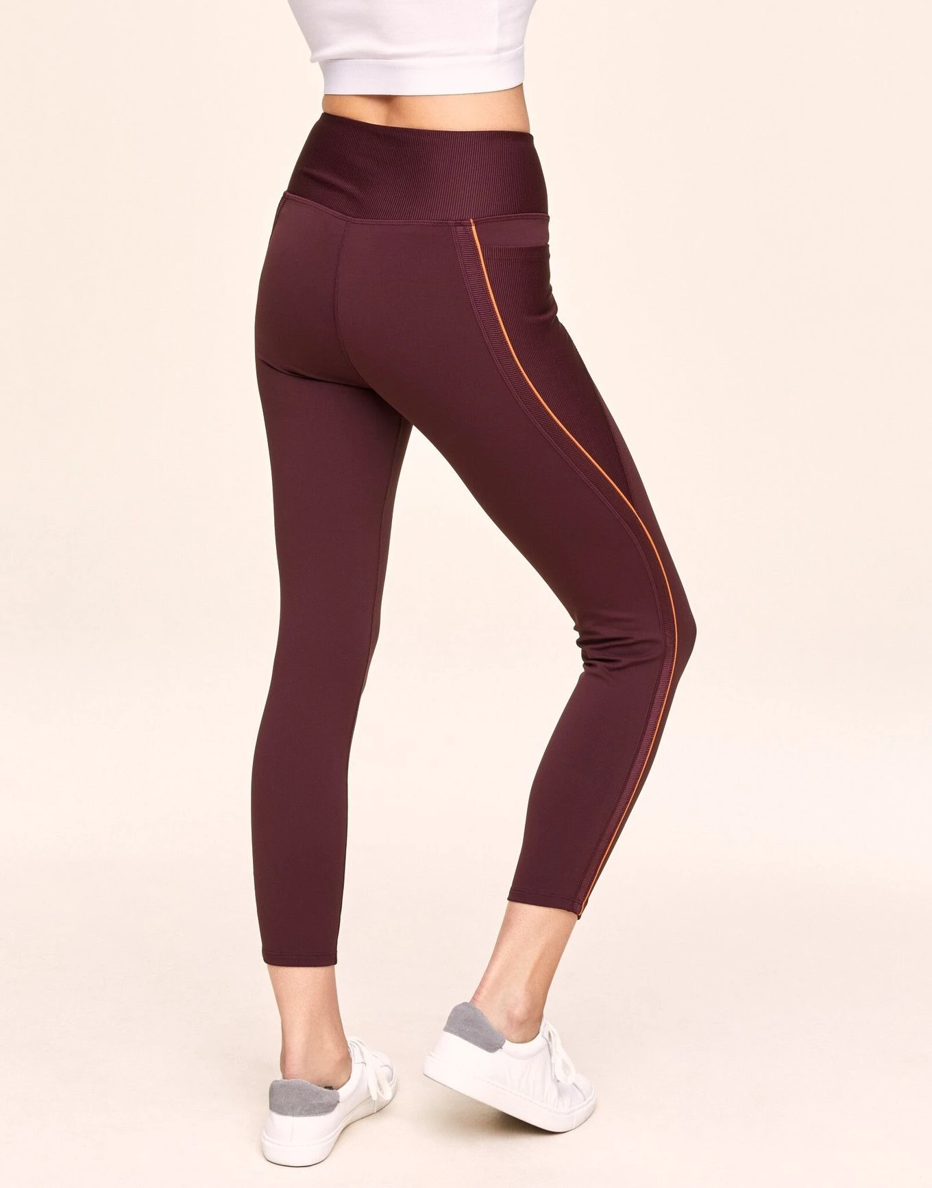 Bailey’s deep plum color is inspired by our favorite glass of red wine—and trust us, she feels just as fine. This 7/8 cut hits right above the ankle for the most flattering fit you’ll find, complete with yellow pintuck details and drop-in phone pockets for maximum style *and* convenience. Oh—and did we mention Bailey’s made from recycled materials? If you see us wearing this legging every single day this fall, yes you did.