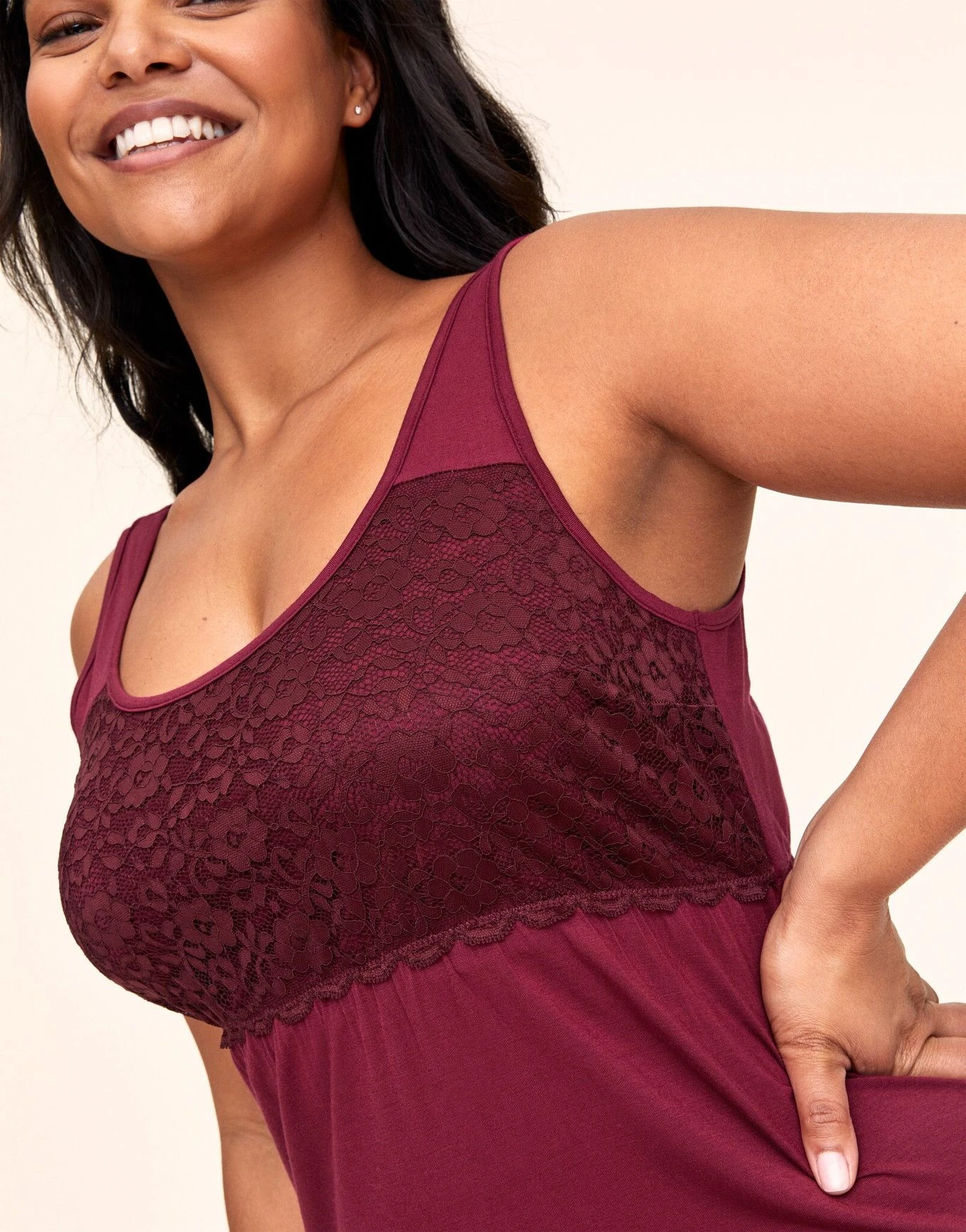 Baylee’s deep-red hue is inspired by our favorite glass of red wine—and trust us, she feels just as fine. This A-line knit slip is perfect for sleeping, lounging, and even layering to wear out. Featuring a tank-style bodice with 24/7 bust support, complete with soft floral-lace details inspired by rhododendron flowers, this essential piece is designed for maximum style *and* comfort. If you see us wearing this look almost every day of the week, yes you did.