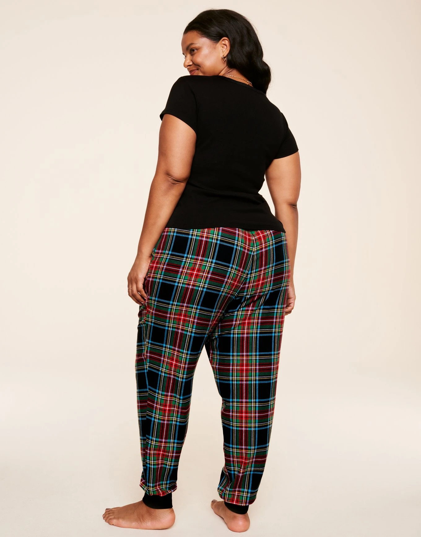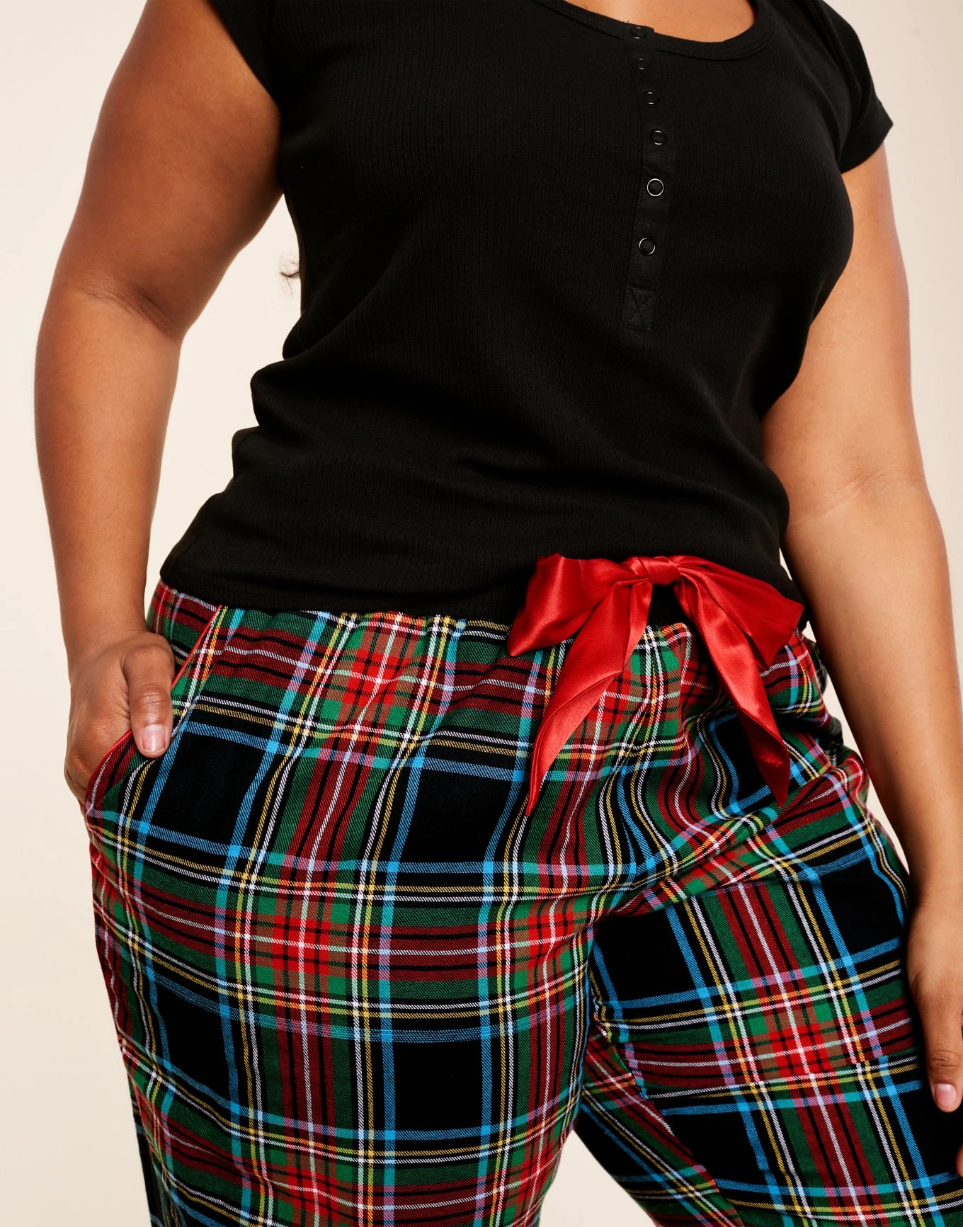 This black T-shirt and Stewart-Tartan plaid joggers set is the epitome of cozy chic. The rib-knit short-sleeve shirt has a quarter button-up neckline, while the 100%-cotton flannel jogger pants have a faux satin drawstring, rib-knit waistband and cuffs, and side seam pockets with contrast piping. Basically, you’re going to want to live in this set! (Available in plus sizes 0X–4X.)