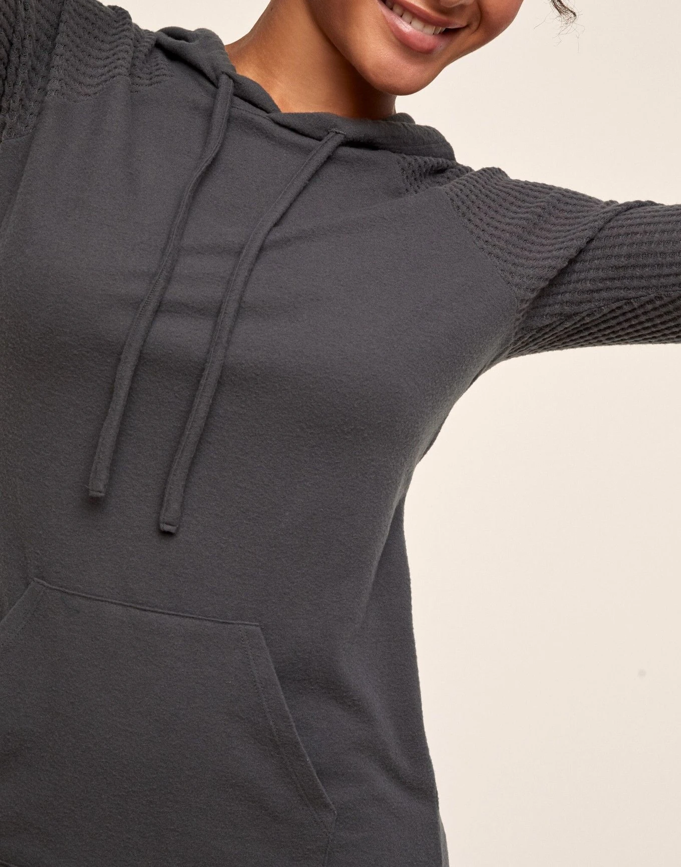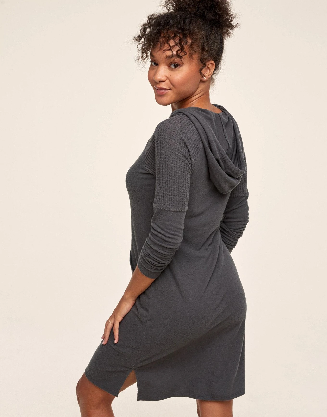 A hoodie + sleepshirt teamed up together to create the comfiest lounge look ever. Cozy up in this soft knit one-piece featuring waffle-textured sleeves and a laidback kangaroo pocket. (Available in sizes up to 4X!)