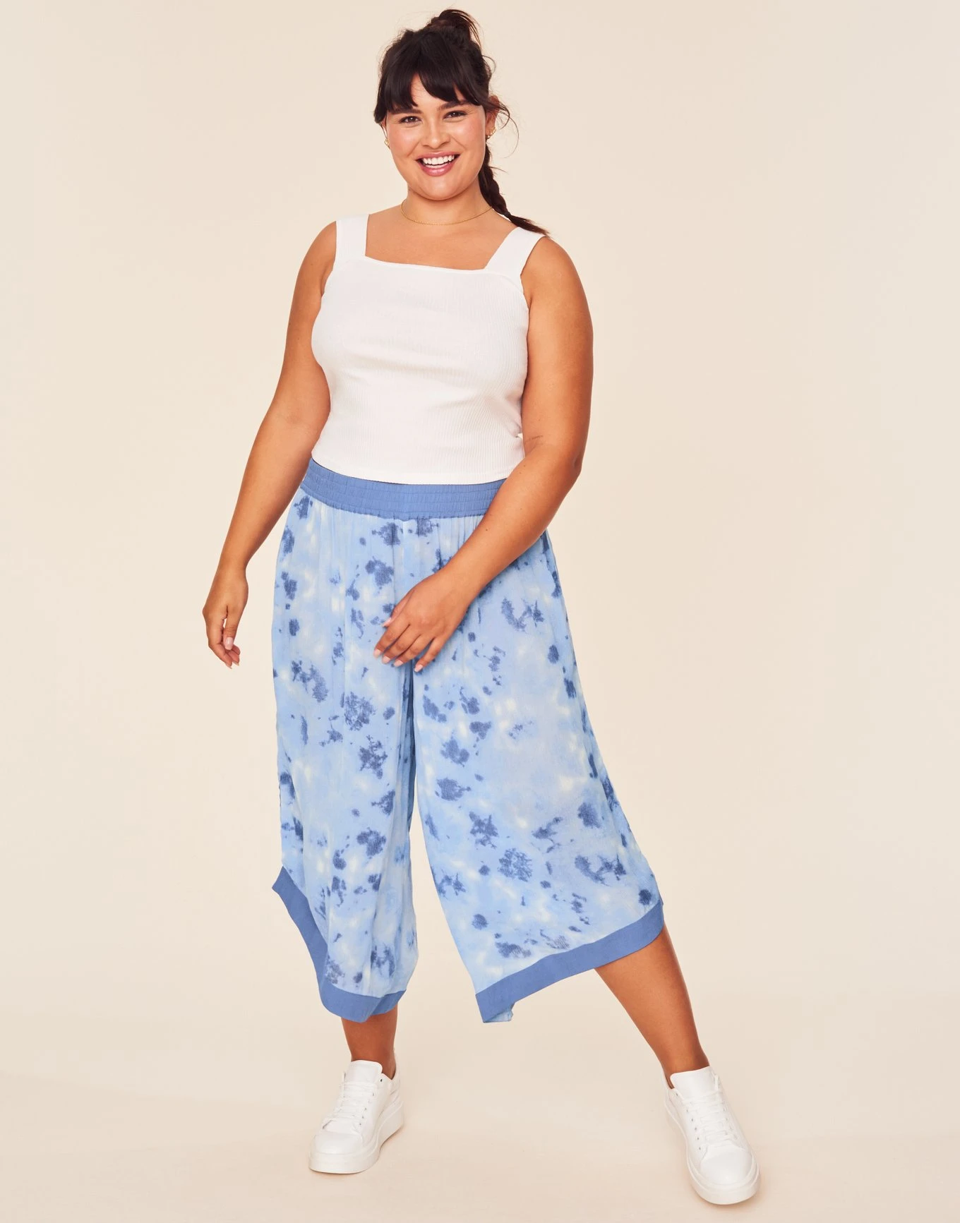 Evi’s comfy fitted crop top teams up with our relaxed-fitting pants feat. a hand-dyed tie-dye print for an effortlessly laidback look. Wear it at home, or dress it up & take to the streets! (Available in sizes XS–4X.)