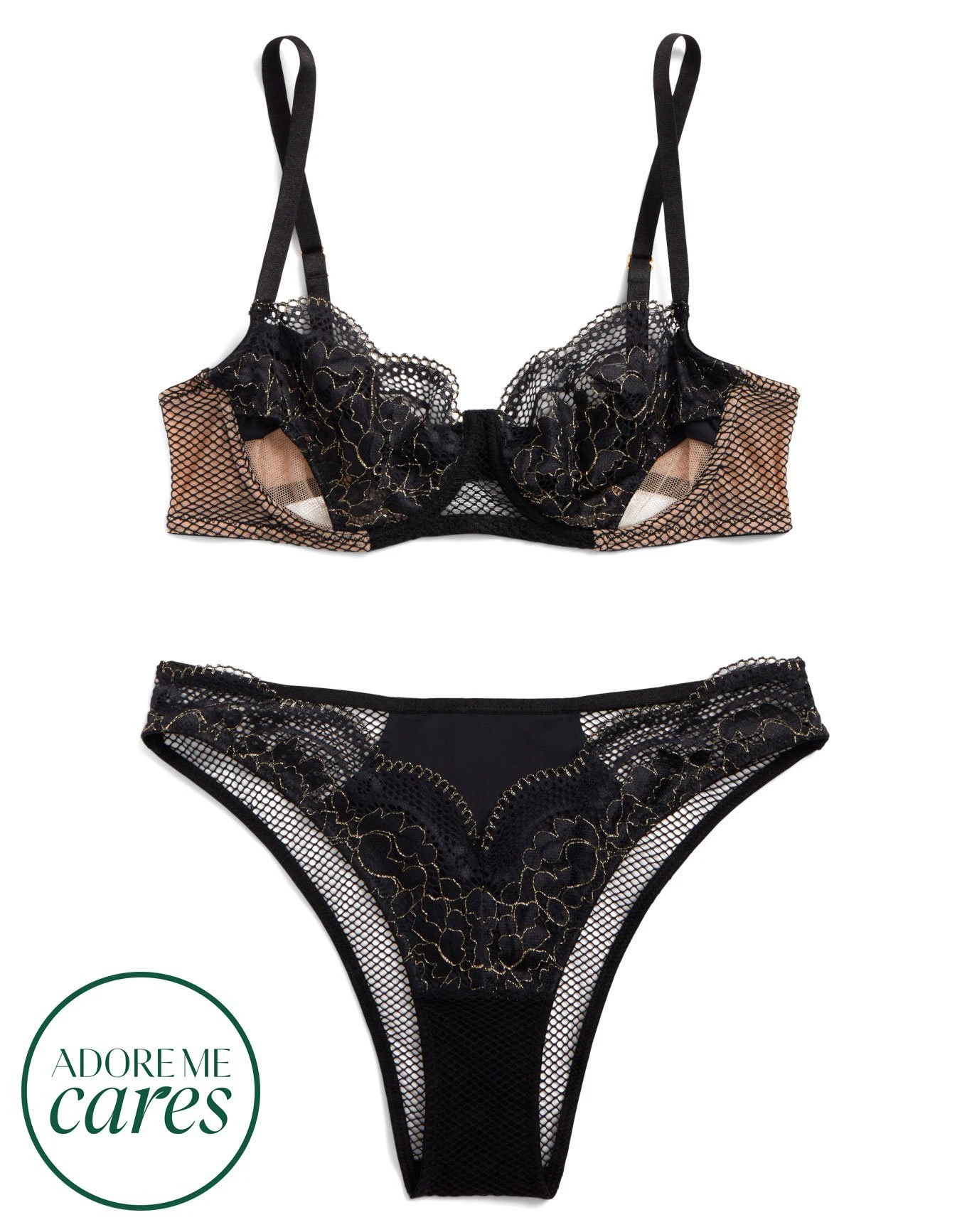 Lace cups with metallic highlights