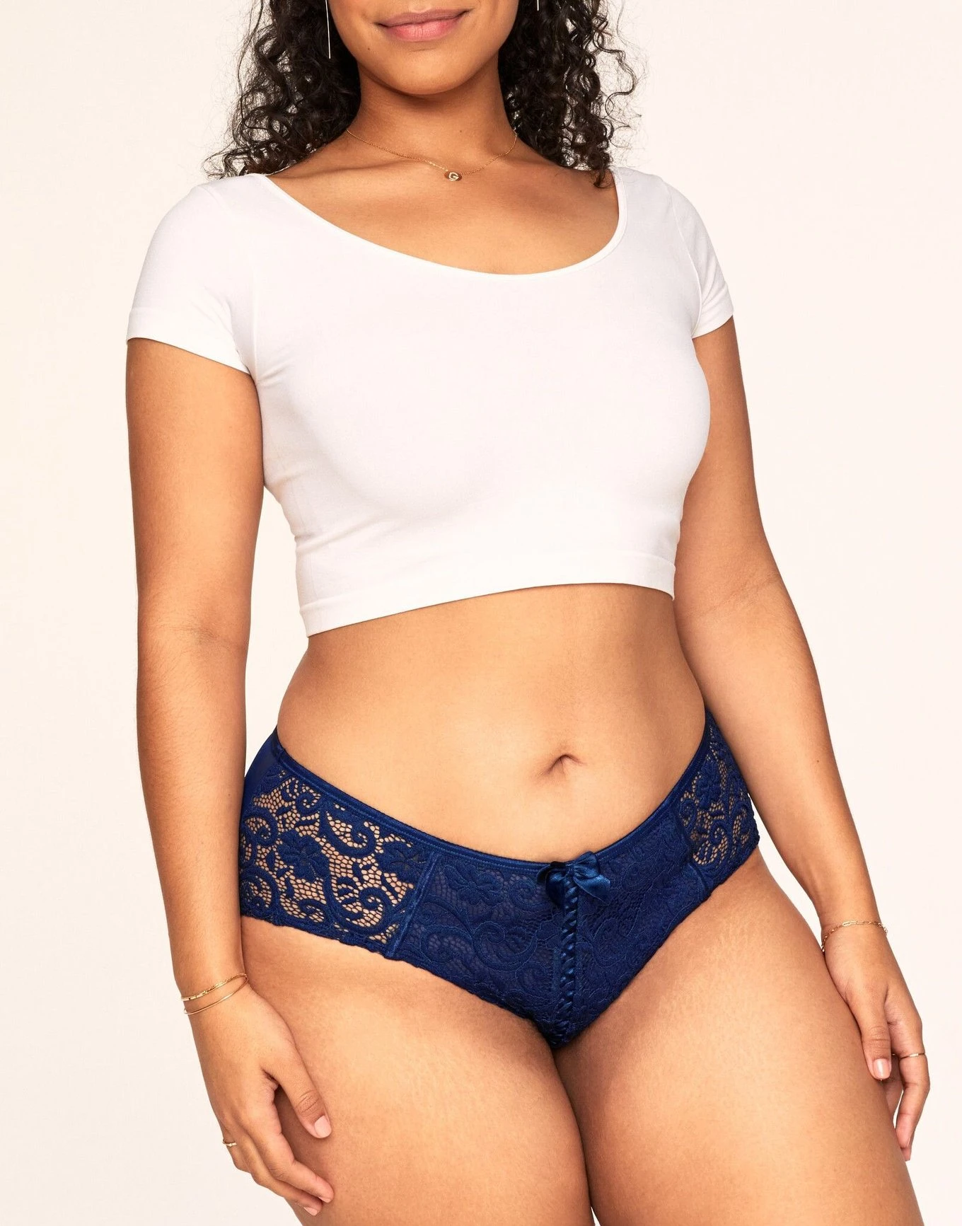 Flirty and fun, this hipster panty features scalloped lace trim and a satin bow at the center front. Crafted from a super-soft fabric, this hipster panty is sure to become your new favorite. (Available in plus-sizes M-1X.)