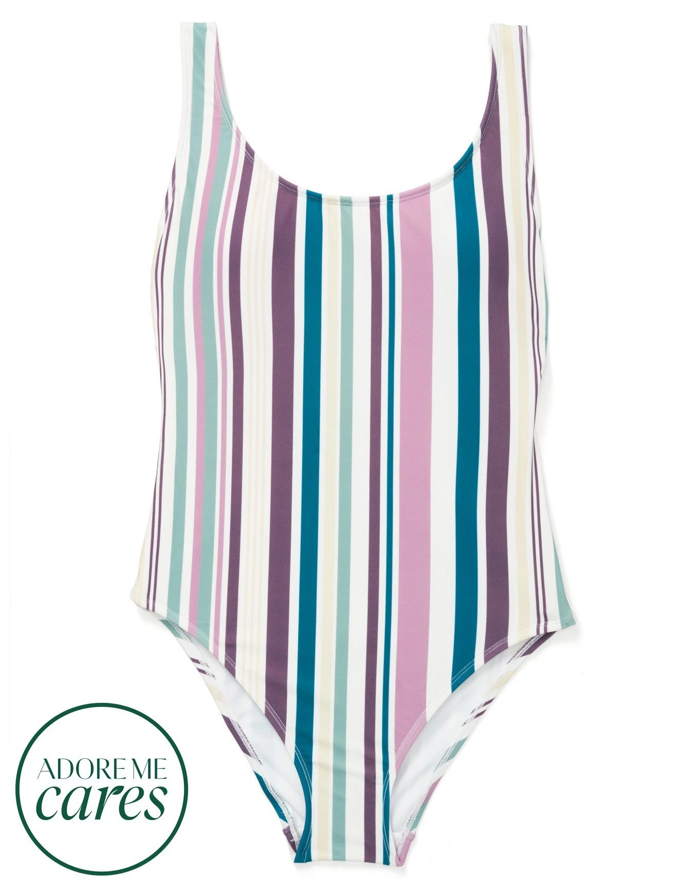 Living life in full color is totally your thing, and we have the season’s most popular retro-striped print to stripe it rich—big time. | P.S. Our latest printed swimwear styles were designed with sustainable fashion in mind! To create this one-piece, we utilized a digital-printing technique that cuts our water usage in half, uses absolutely zero harmful chemicals, and requires less machinery & maintenance—because our environment deserves better.